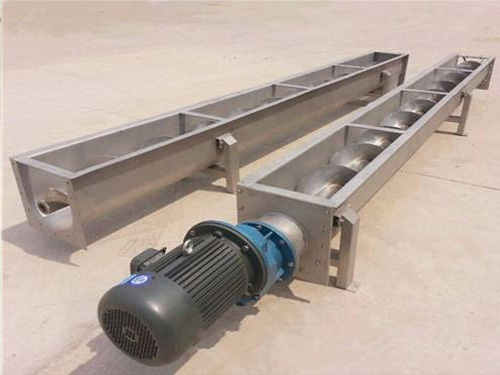 一般情况下,出厂总装时将螺旋输送机中间节按长度长短依次排列,长的中间节靠近头节,相同长度的中间节则挨在一起,如果有特殊要求,则在订货时给出排列顺序。在螺旋输送机头节内装有支推轴承承受轴向力,在中间节和尾节内装有用轴承支承螺旋轴,此外,在螺旋输送机尾节内还装有可轴向移动的径向轴承以补偿螺旋轴长度的误差和适应温度的变化。螺旋输送机螺旋面的形式有实体螺旋(S制法)和带式螺旋(D制法)两种。各螺旋轴之间采用法兰式联接, 保证了联接轴的互换性,便于维修。螺旋输送机机盖为瓦片式并用盖扣夹紧在机壳上,若需改进密封性能,用户可自行在机盖与机壳间加防水粗帆布。 螺旋输送机进、出料装置有进料口,方型出料口,手推式出料口,齿条式出料口四种,由用户在使用现场在机体上开口焊接。